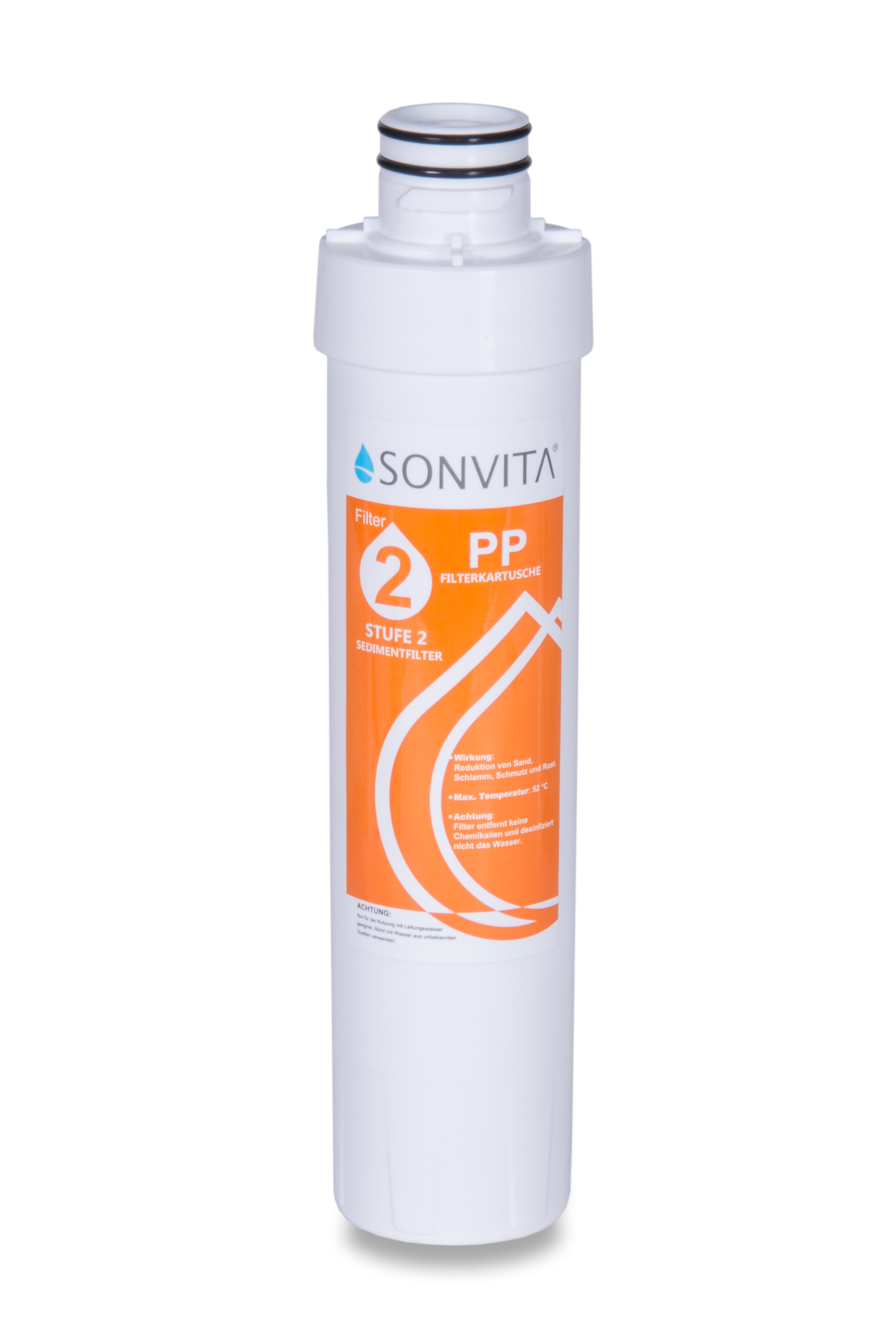 - Sedimentfilter (PP) – filtert grobe Partikel wie Sand, Rost und Schwebstoffe