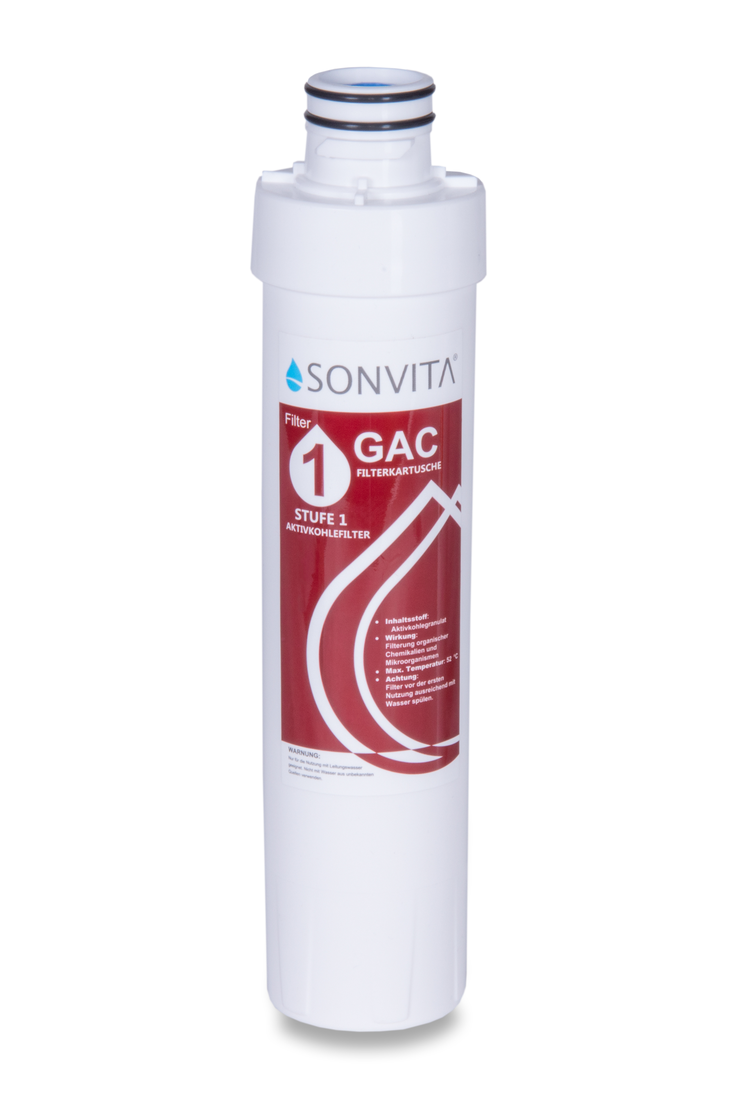 - Aktivkohlefilter (GAC) – entfernt Chlor, organische Verbindungen, Gerüche und Geschmacksstoffe