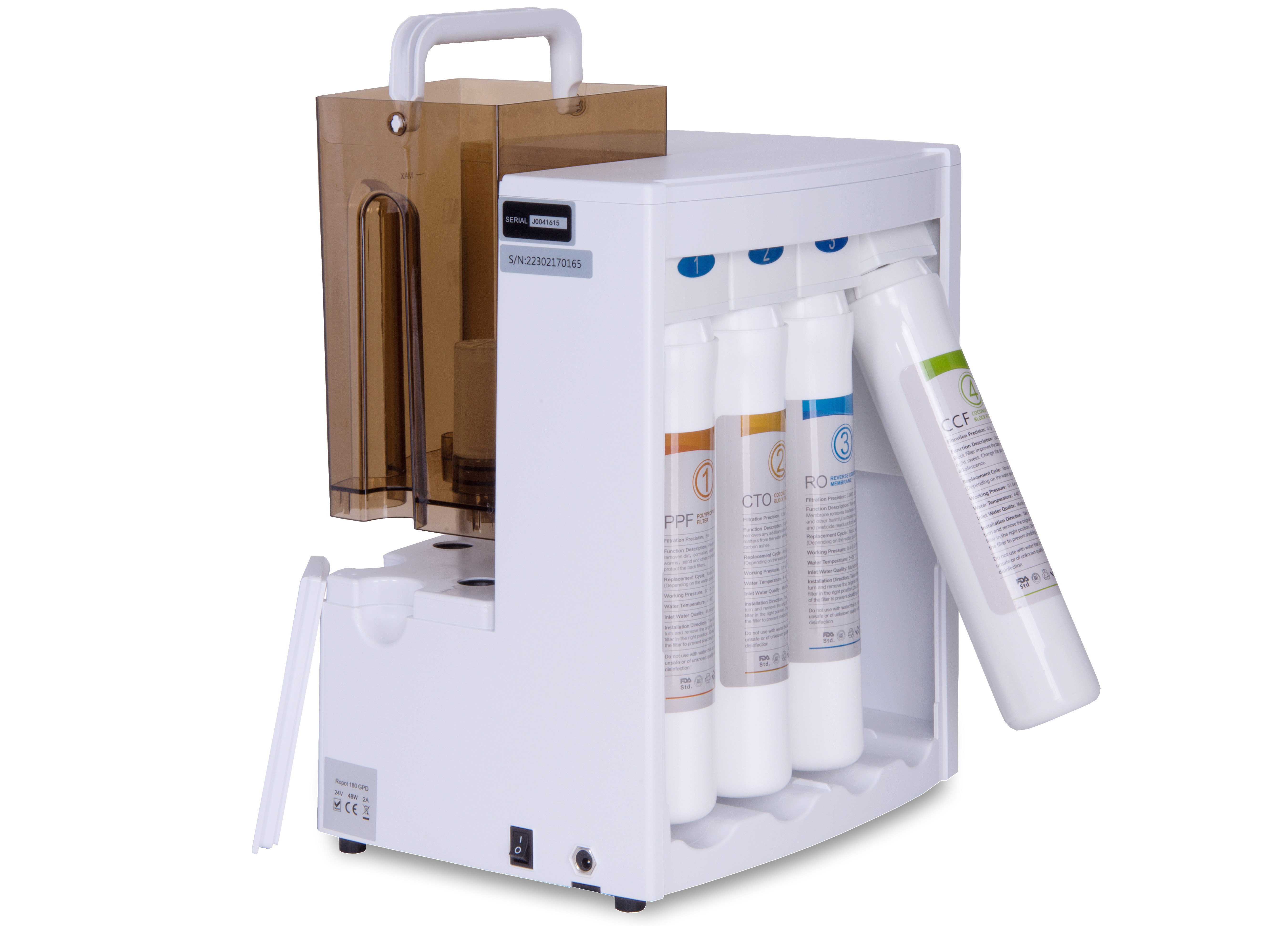 Die Auftisch-Anlage Aqua Vita ähnelt nicht nur vom Design her einer Kaffeemaschine, sondern auch von der Funktionsweise: Leitungswasser rein in den Tank, kurz warten und das Ergebnis genießen – keine Installation, keine Montage! Die Anlage wird nicht an die Wasserleitung angeschlossen.