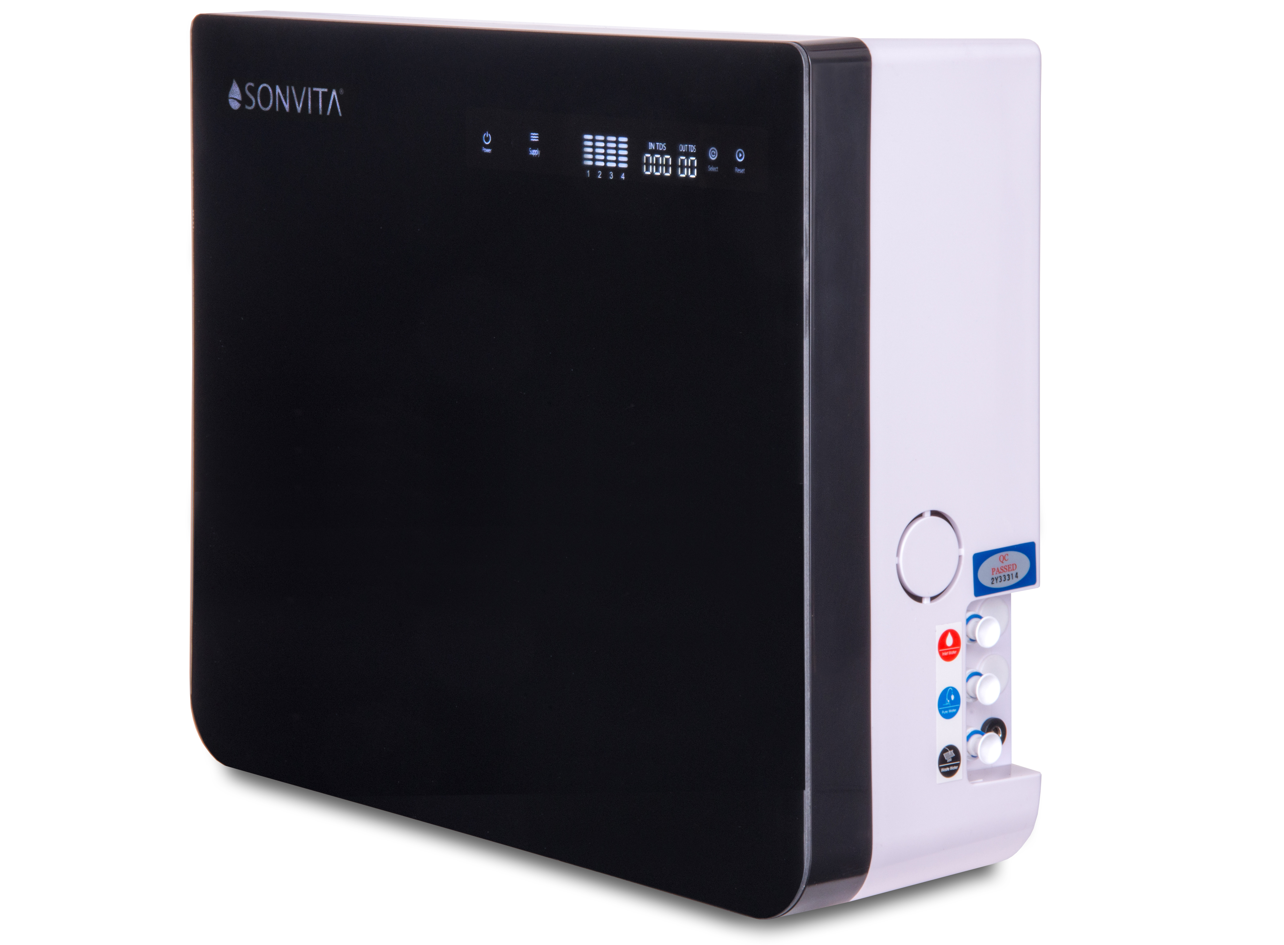 Der innovative LED Bildschirm zeigt Ihnen die Qualität des Osmosewassers, die Lebensdauer der Membran und Filter an sowie die Qualität des Leitungswassers.