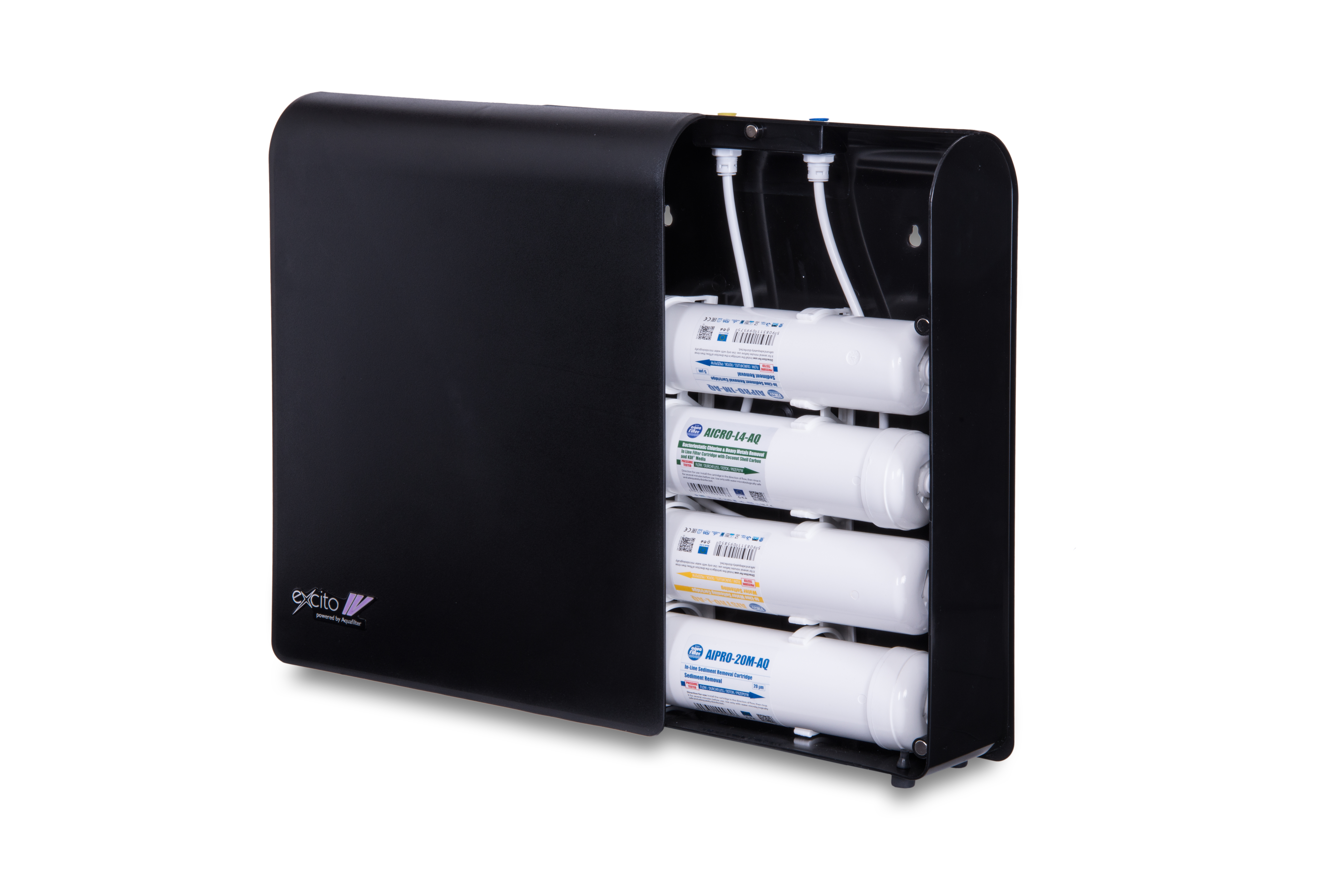 Die Excito-ST Wasseraufbereitungsanlage von Aquafilter sorgt für hochwertiges, geschmacklich verbessertes und kalkfreies Wasser. Mit ihrem mehrstufigen Filtersystem schützt sie Haushaltsgeräte, verbessert die Wasserqualität und entfernt zuverlässig Partikel, Kalk, Chlor und organische Verbindungen.