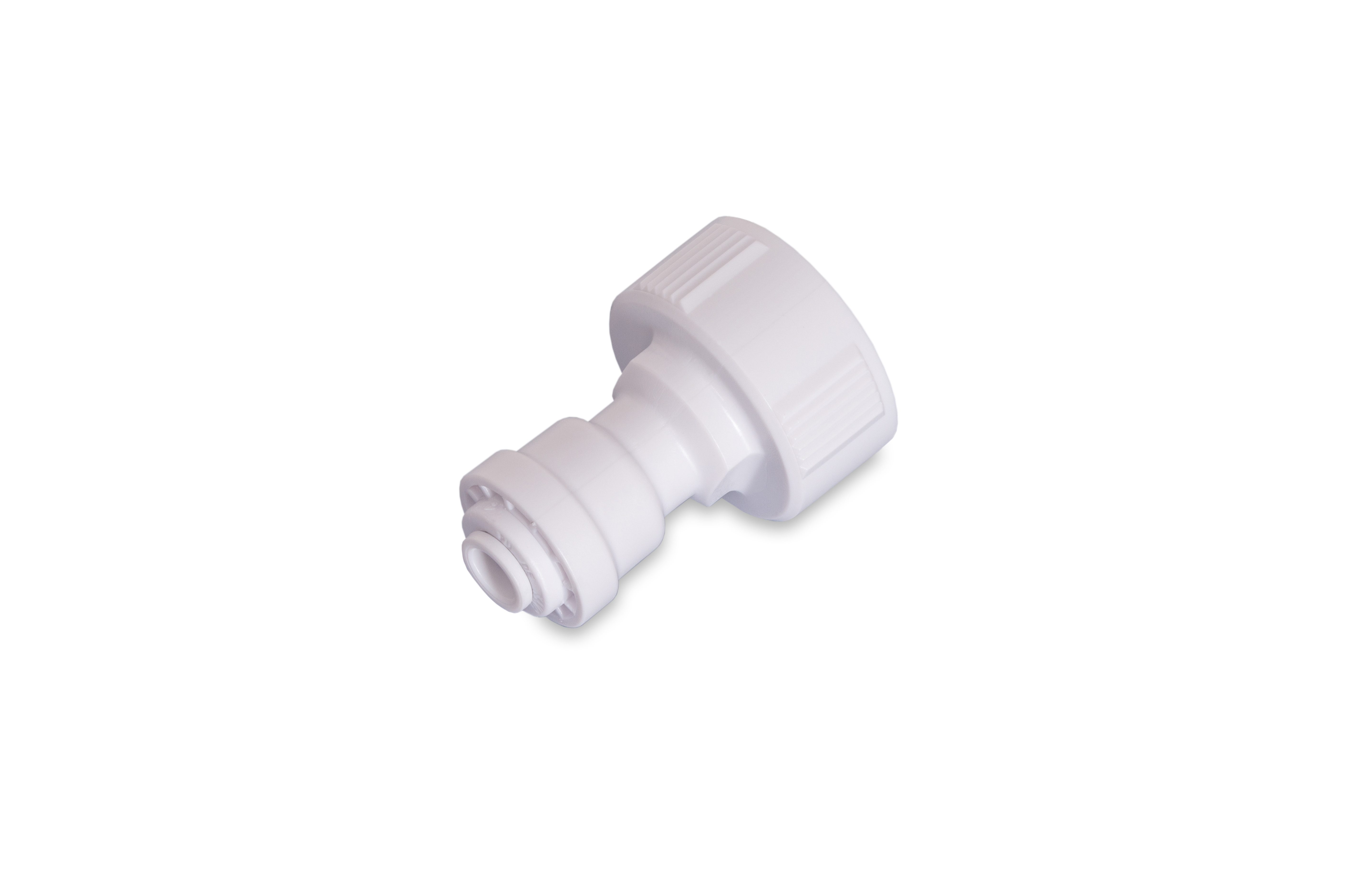 Gefertigt aus robustem, lebensmittelechtem Kunststoff bietet der Adapter eine zuverlässige, dichte und hygienische Verbindung, ideal für den Einsatz im Trinkwasserbereich.